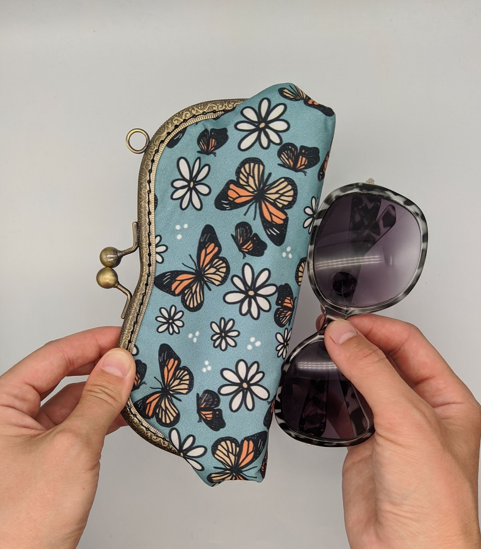 Футляр для двух очков с фермуаром - Бабочки, ручной работы