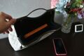 Женская сумка саквояж с фермуаром из экокожи с ручной стежкой черного цвета